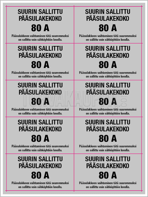 Sulaketarra-arkki 80A 55x30mm (arkissa 10 tarraa) harmaa