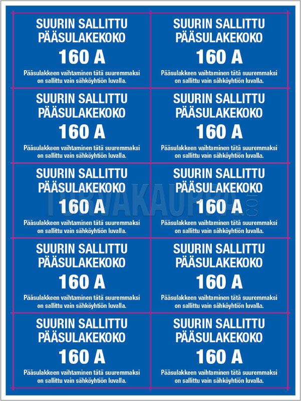 Sulaketarra-arkki 160A 55x30mm (arkissa 10 tarraa) sininen