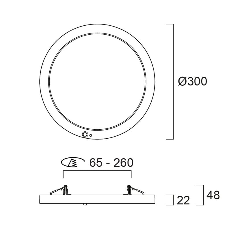 - Valaisin 290 ja 300 mm sopivat 65-260 mm aukkoon