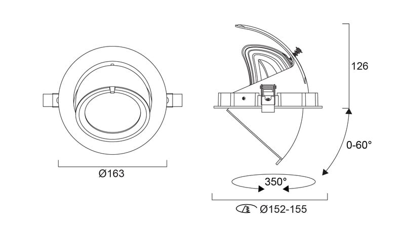- Valaisinosaa voidaan kallistaa 60˚ ja kääntää 350˚