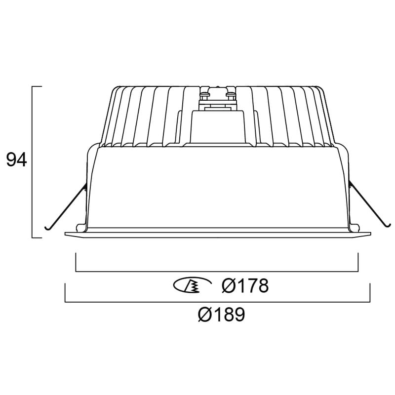 • IP65/IP20, ilman suojalasia (alapuolelta IP65/yläpuolelta IP20) IP65 suljetussa alakattorakenteessa - Saatavissa DALI/Switch-Dim ja Casambi, sekä IP65-mallissa DALI/Switch-Dim 3h turvavalo