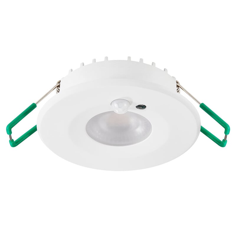 - Magneettikiinnitteinen kehys, helppo pääsy DIP-kytkimiin värilämpötilan ja PIR-asetusten säätämiseksi: läsnäoloviive 30 s – 3 min, tunnistimen herkkyys 25–100%, päivänvalotunnistus ja Stand-by taso 10%