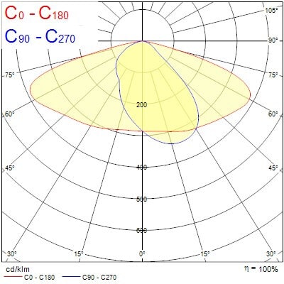 - Valaisimen valonjako osittain epäsymmetrinen