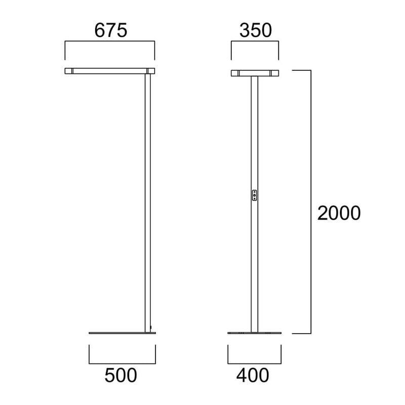 - Valaisinosan mitat ovat 675 x 350 mm, 1950 mm korkea pylväs (kokonaiskorkeus 2 m)