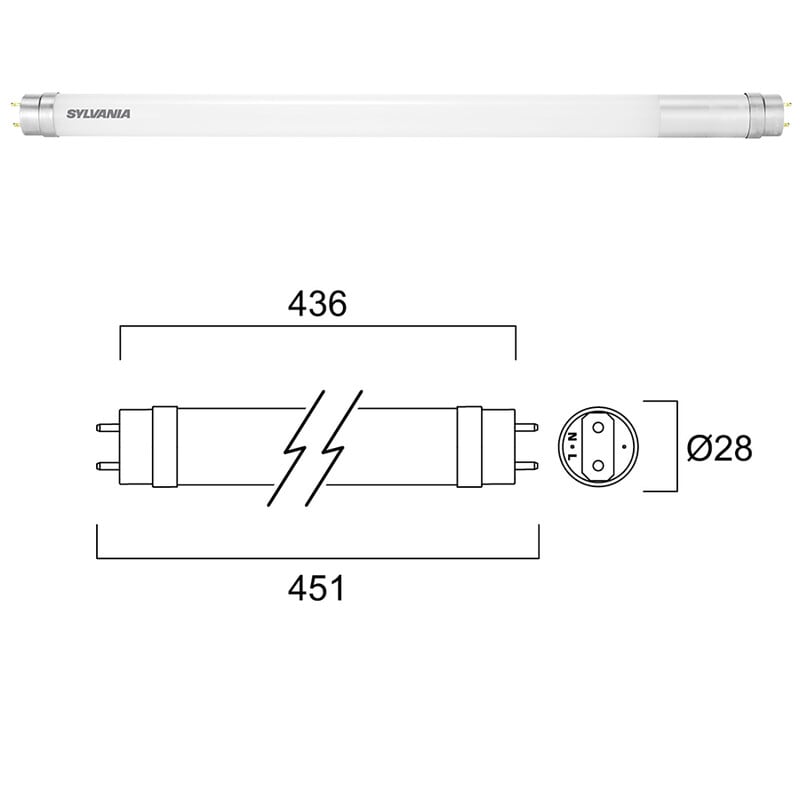 - Lasiputki ja alumiinipäädyt, sama ulkonäkö kuin perinteisellä loisteputkilampulla