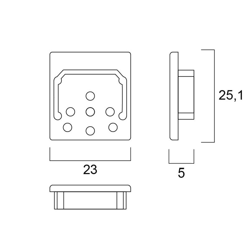 Päätykappale 23x25mm pintaprofiilille musta (2kpl) Päätykappaleet sopivat Sylvanian alumiiniprofiiliin. Sylvania AL-profiilipaketit sisältävät alumiiniprofiilin, päädyt 2 kpl, opaalikannen ja 4 kpl asennuskiinnikkeitä. Värivaihtoehdot ovat hopea ja musta. Alumiiniprofiilit sopivat käytettäväksi Start Flex ja Start Flex Pro LED-nauhojen kanssa. Valittavissa on eri muotoisia profiileja pinta- ja uppoasennukseen ja myös kulmaprofiileja. Lisätarvikkeina päätyjä ja asennuskiinnikkeitä. Asennus on helppoa ja nopeaa. Sopii esimerkiksi korostusvalaistukseen: ravintolat, hotellit, aulat sekä asuntotuotantoon: keittiöt, kodinhoitohuoneet. Takuu 3 vuotta.