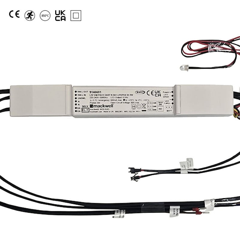 Turvavaloyksikkö 3h Self-Test/DALI-monitoring 6-54V pikaliittimillä (QC=quick connector), LIFEPO4 3H3W RC. Yhteensopiva Sylvania-valaisimien kanssa, joissa on pikaliittimet matalajännitteiselle 6–54 V LED-moduulille. 9146603 Turvavaloyksikkö 3h Self-Test/DALI-monitoring 6-54V pikaliittimillä LIFEPO4 3H3W RC