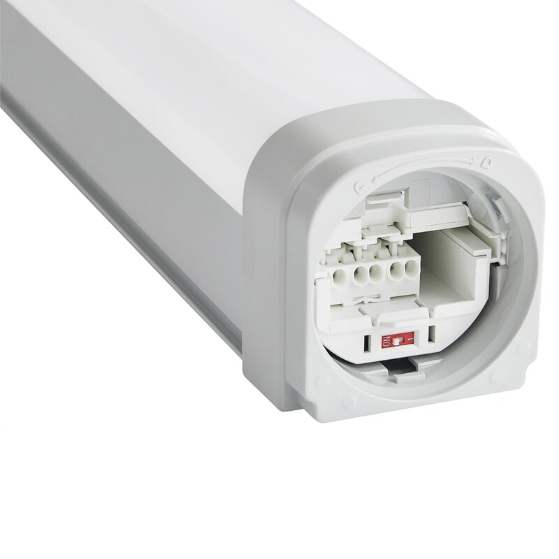 • Valaisimen kytkentä pikalukittavan liukukannen alla kätevästi valaisimen päädyssä