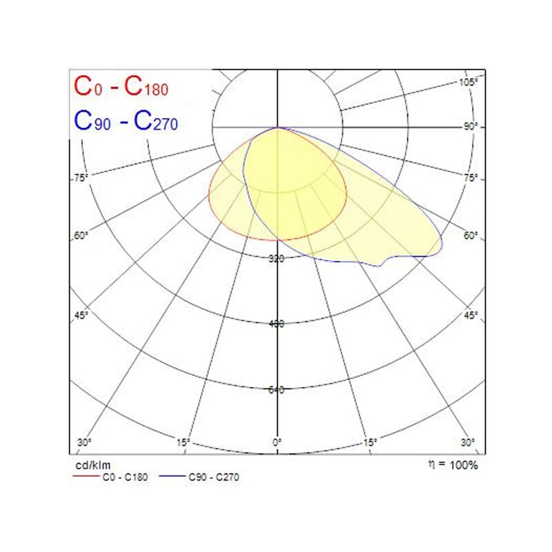 - Symmetrinen 60° ja asymmetrinen 65° x 120° (imax@55°) valonjako