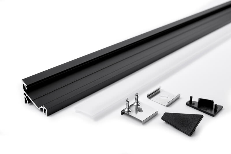 Alumiiniprofiili musta kulma 24x19 2m paketti. Sisältää anodisoidunprofiilin, opaalikannen, päädyt ja asennuskiinnikkeet. Musta profiili,opaali häikäisysuoja. Sylvania AL-profiilipaketit sisältävät alumiiniprofiilin, päädyt 2 kpl, opaalikannen ja 4 kpl asennuskiinnikkeitä. Värivaihtoehdot ovat hopea ja musta. Alumiiniprofiilit sopivat käytettäväksi Start Flex ja Start Flex Pro LED-nauhojen kanssa. Valittavissa on eri muotoisia profiileja pinta- ja uppoasennukseen ja myös kulmaprofiileja. Lisätarvikkeina päätyjä ja asennuskiinnikkeitä. Asennus on helppoa ja nopeaa. Sopii esimerkiksi korostusvalaistukseen: ravintolat, hotellit, aulat sekä asuntotuotantoon: keittiöt, kodinhoitohuoneet. Takuu 3 vuotta.
