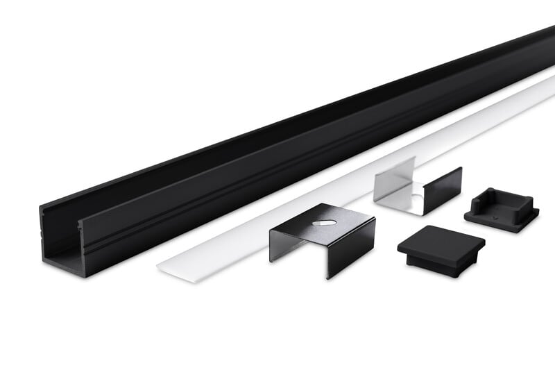 Alumiiniprofiili musta 19x19 2m paketti. Sisältää anodisoidun profiilin,opaalikannen, päädyt ja asennuskiinnikkeet. Musta profiili, opaalihäikäisysuoja. Sylvania AL-profiilipaketit sisältävät alumiiniprofiilin, päädyt 2 kpl, opaalikannen ja 4 kpl asennuskiinnikkeitä. Värivaihtoehdot ovat hopea ja musta. Alumiiniprofiilit sopivat käytettäväksi Start Flex ja Start Flex Pro LED-nauhojen kanssa. Valittavissa on eri muotoisia profiileja pinta- ja uppoasennukseen ja myös kulmaprofiileja. Lisätarvikkeina päätyjä ja asennuskiinnikkeitä. Asennus on helppoa ja nopeaa. Sopii esimerkiksi korostusvalaistukseen: ravintolat, hotellit, aulat sekä asuntotuotantoon: keittiöt, kodinhoitohuoneet. Takuu 3 vuotta.