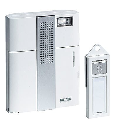 RF-ovikello -ja painike, 7 soittoääntä, vilkkuvalo, äänenvoimakkuus säädettävissä painike paristoineen sis.pak, kello muuntaja taiparisto ei sis.