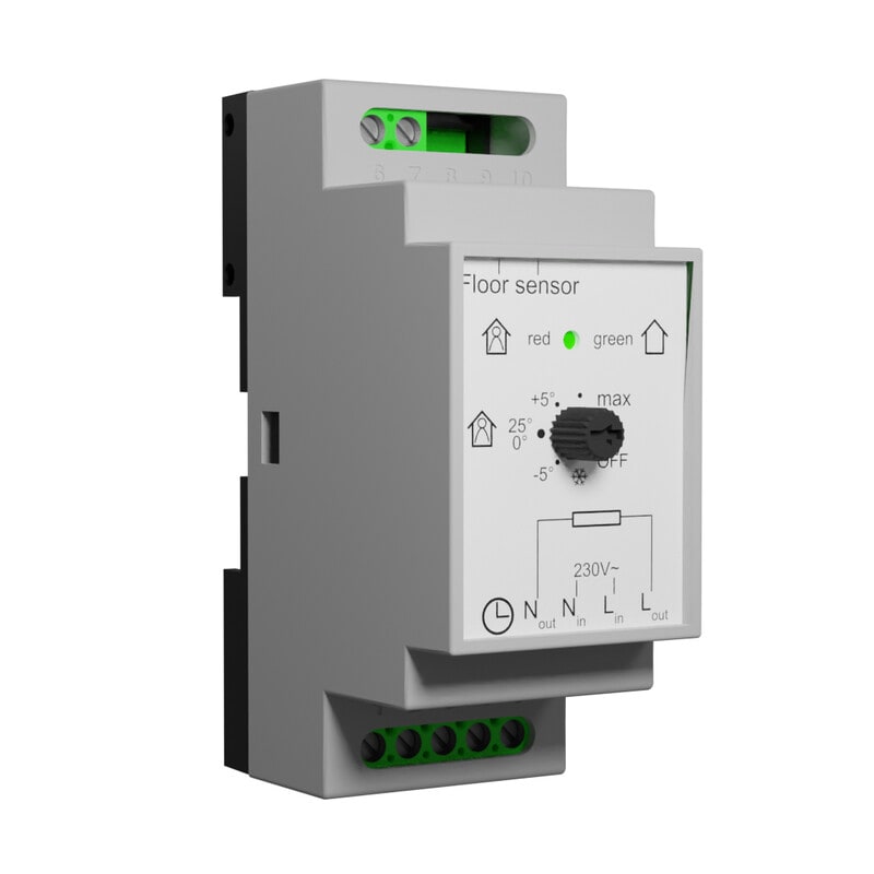 ecoDesign DIN-termostaatti. Lattia, huone ja sulanapito ominaisuudet.Mahdollisuus sovelluksella tehdä energiansäästöohjelma. 230V/16A IP20.EcoDesign pisteet 40% (paras mahdollinen)