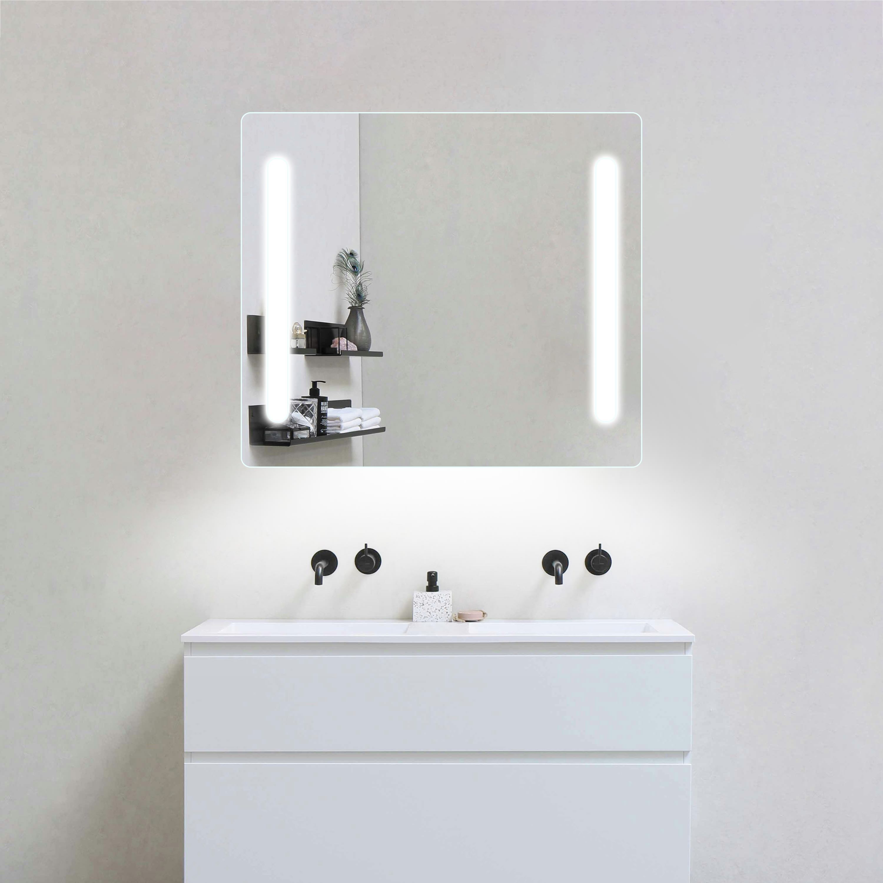Valopeilit ovat muotoilultaan pehmeitä ja kodikkaita, kulmat sekä valoaukot ovat pyöristetyt. Peileihin on lisätty LED-valo myös alareunaan ja se antaa näin valon myös pesualtaalle. LED-valon teho on 32 W ja lumen-arvo 3200 Lm.