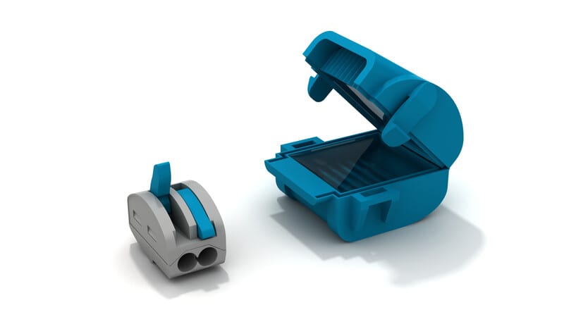 2kpl geelillä täytetty minikotelo + 2kpl 2:n johtimen liittimiä. 0,2-4mm2 johtimille. IPX8, Roiskevesisuojattu.