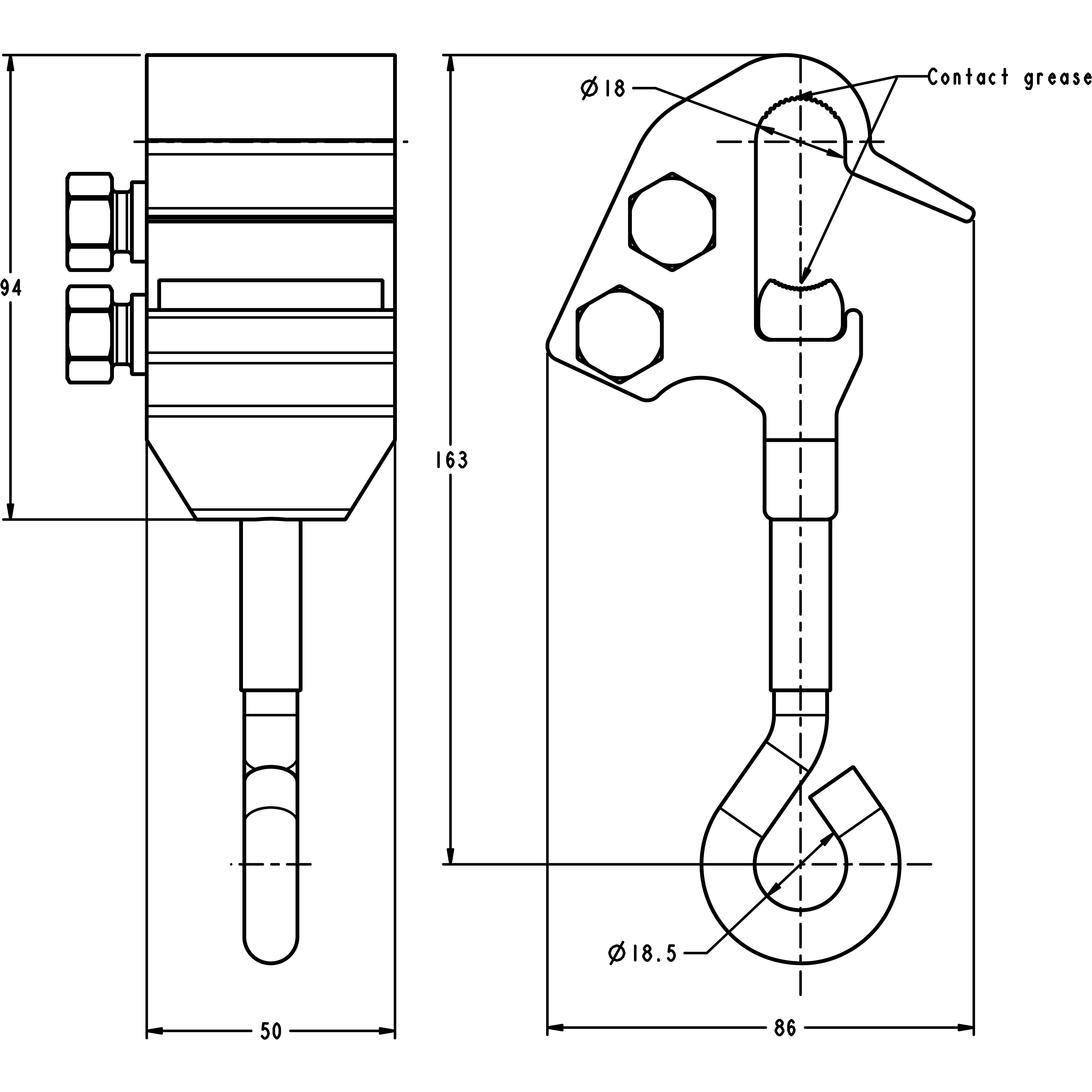 Haarajohtimen liitinaukko: