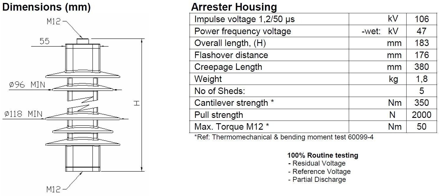 luokan 1(HD) muk. polymeerirunkoinen sinkkioksidiylijännitesuoja,yhtenäinen runkorakenne estää kosteuden pääsyn ylijännitesuojarakenteeseen,erinomainen energianhallintakyky,mekaaninen lujuus ja matala jäännösjännite. testattu IEC60099-4 edition 3 mukaan.