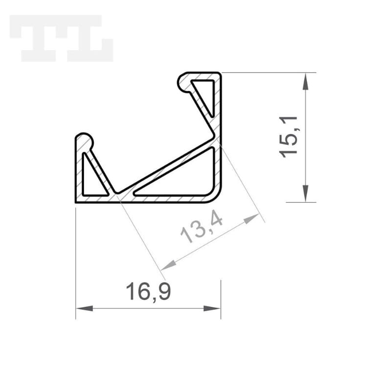 Alumiiniprofiilin P3-4 mitat ovat 15,1 × 16,9 mm ja se soveltuu kulma-asennuksiin. P3-4 LED-profiili voidaan kiinnittää pidikkeellä, kaksipuolisella teipillä tai liimalla, mikä mahdollistaa helpon asennuksen ja mukauttamisen yksilöllisiin tarpeisiin.