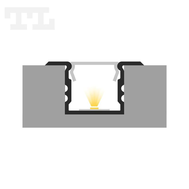 Profiili P18-2 on vain 12,5 mm korkea ja tarjoaa tasaisen valolinjan koko pinnalla ilman näkyviä pisteitä. Alumiinista valmistettu uppoprofiili on kestävä ja vankka.