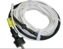 3mt lämmityskaapeli, teho 15W/m = 45W. Itsesäätyvätermostaatti, käynnistyy +3 asteessa.