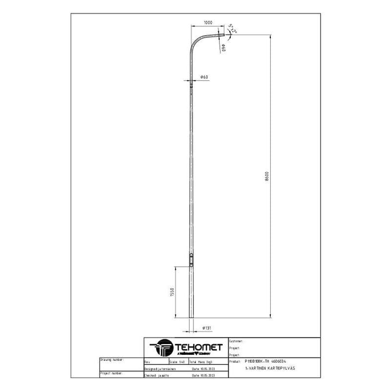 TEHOMET - Kartiopylväs 1-varsi - P110B108K/TH 1-VARTINEN KARTIOPYLVÄS