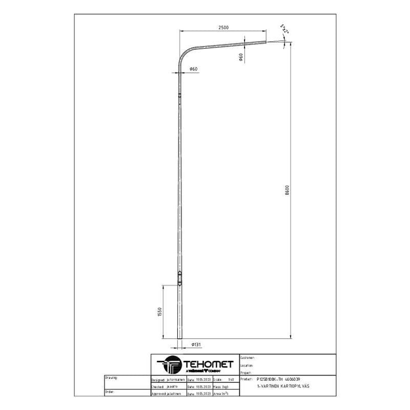 TEHOMET - Kartiopylväs 1-varsi - P125B108K/TH 1-VARTINEN KARTIOPYLVÄS