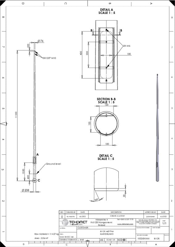TEHOMET - Kartiopylväsrunko - B112 kartiopylväsrunko