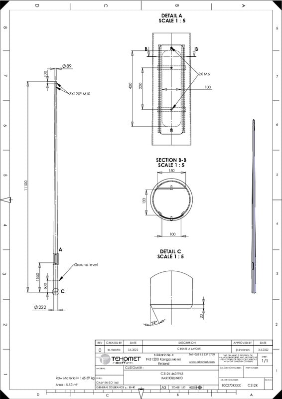 TEHOMET - Kartiopylväsrunko - C312 kartiopylväsrunko
