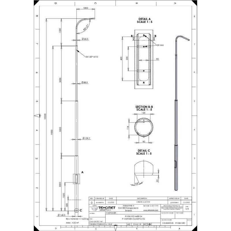 TEHOMET - Olakepylväs - P110B110 olakepylväs