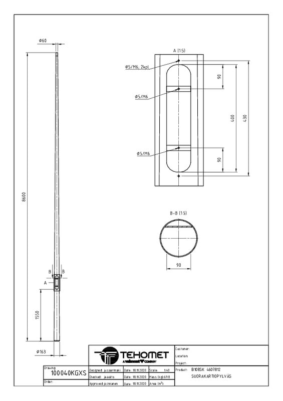 TEHOMET - Teräskartiopylväs - B108S teräskartiopylväs