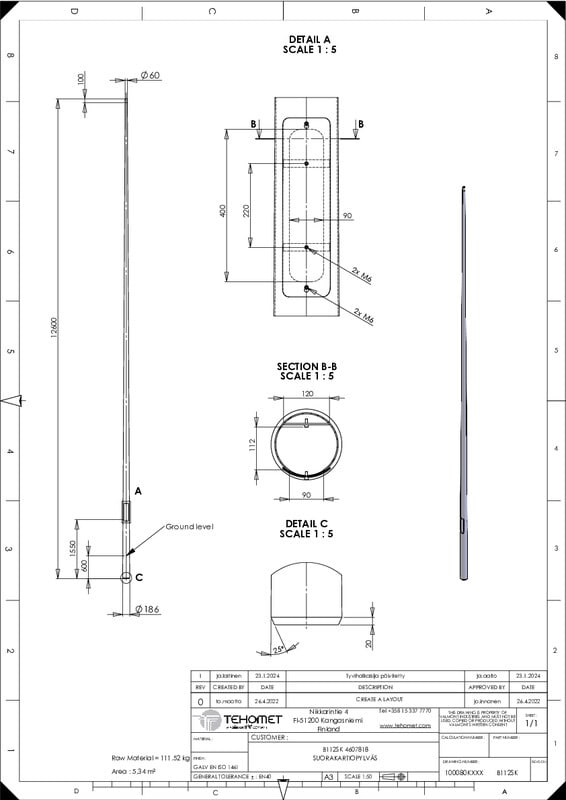 TEHOMET - Teräskartiopylväs - B112S teräskartiopylväs