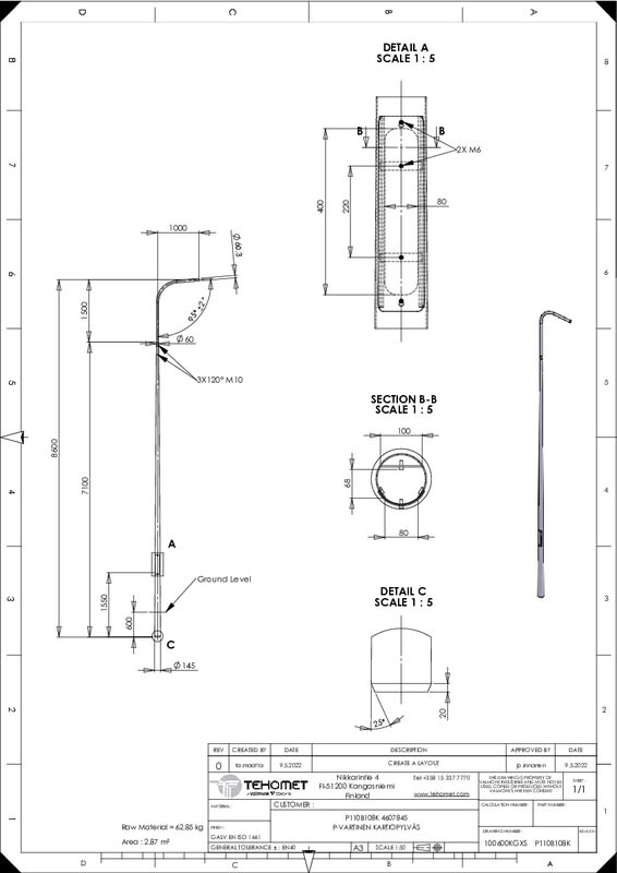 TEHOMET - Teräskartiopylväs - P110B108 teräskartiopylväs