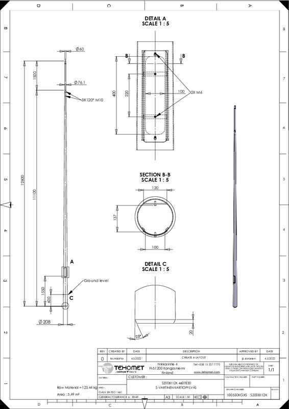 TEHOMET - Teräskartiopylväs - S200B112 teräskartiopylväs