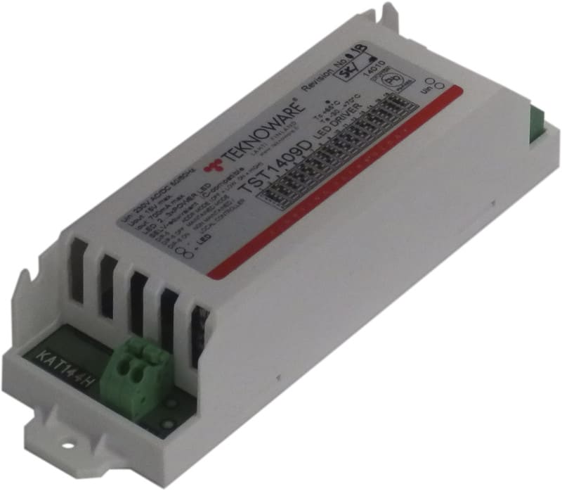 W100003 LED-liitäntälaite, LED-Driver (TST1409D) 230 VAC/DC 3xLED, 700mA, keskusakustojärjestelmän osoitteellisiin Control-valaisimiin (laite muovikotelolla)