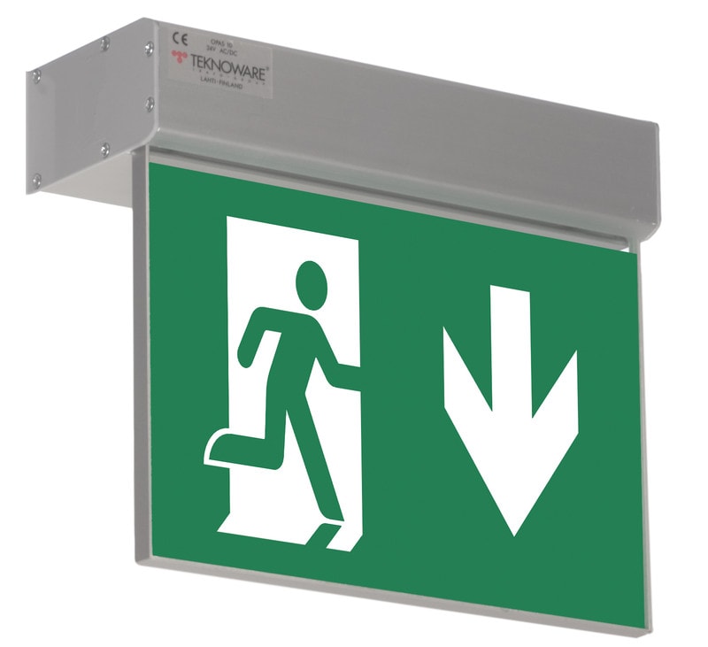 Valaisimen opastelevyn symboli on silkkipainettu levyn sisälle.