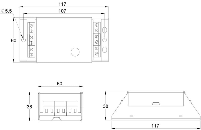 TST6804- ja TST6805-laitteissa on myös kytkinohjaustulo, trimmeri tai DIP-kytkin. Niillä säädetään kuinka pitkään valaisimet pysyvät päällä normaalisyötön palautuksen jälkeen (0-15 minuuttia).