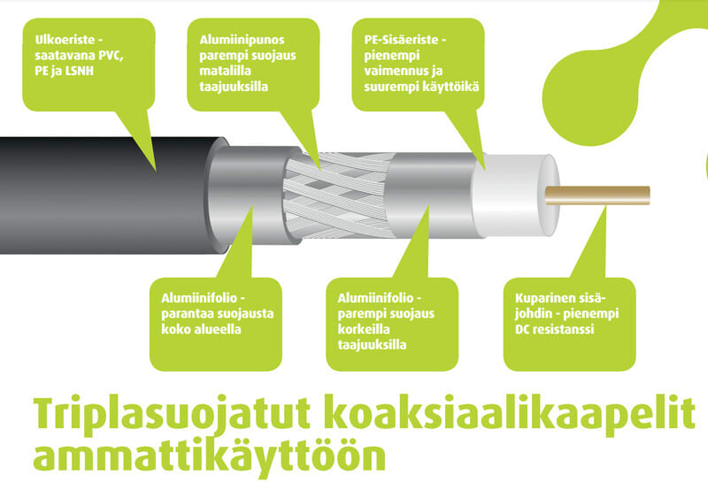 Koaksiaalikaapeleilta tämä vaatii korkeata suojausvaimennusta. Uusissa Macabin kaapeleissa on kolminkertainen suojaus, jolla vaatimukset saadaan helposti täytettyä.