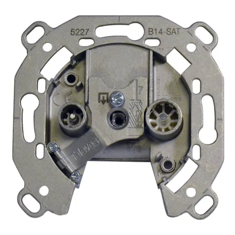 Televesin täysin säteilytiivis ketjutettava antennirasia laadukkailla IEC- liittimillä. Kaksi IEC-liitintä, joista uros on TV:lle tai Radiolle ja naaras satelliittivirittimelle.