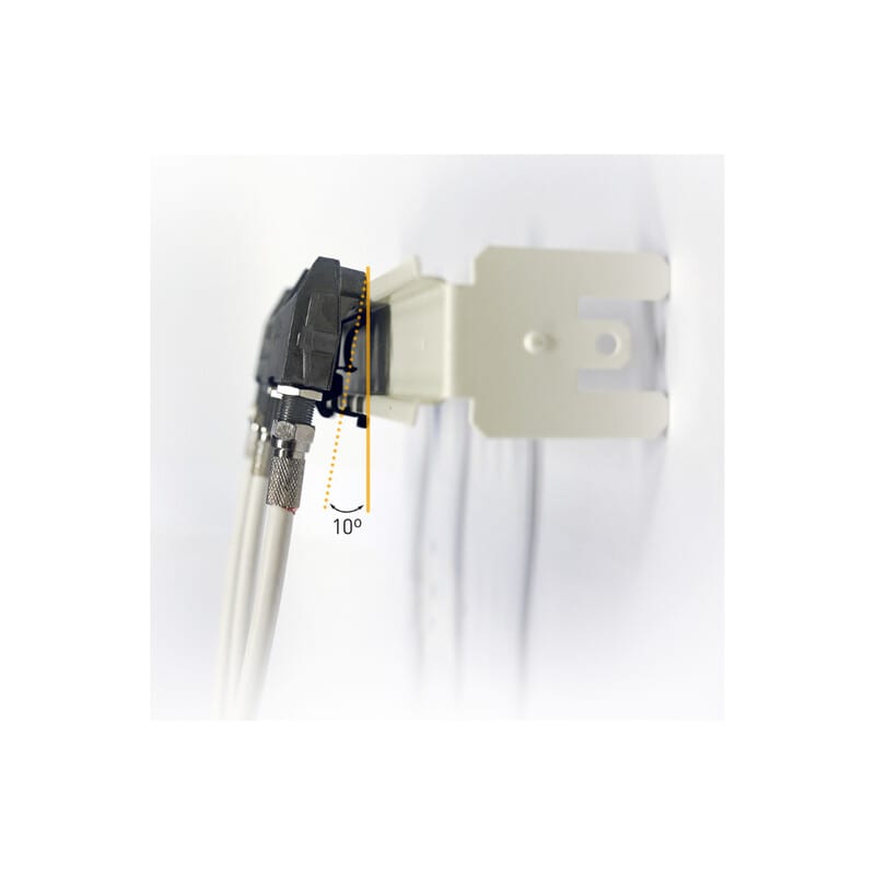 - F-liittimien kaltevuuskulma 10 astetta asennusseinästä helpottaa kaapelien asennusta