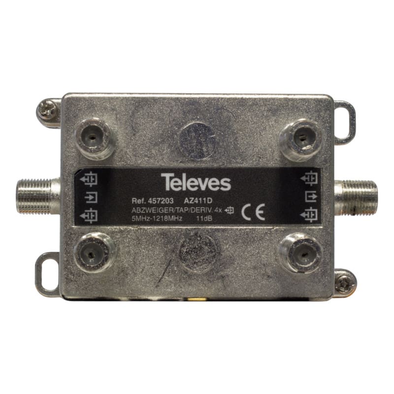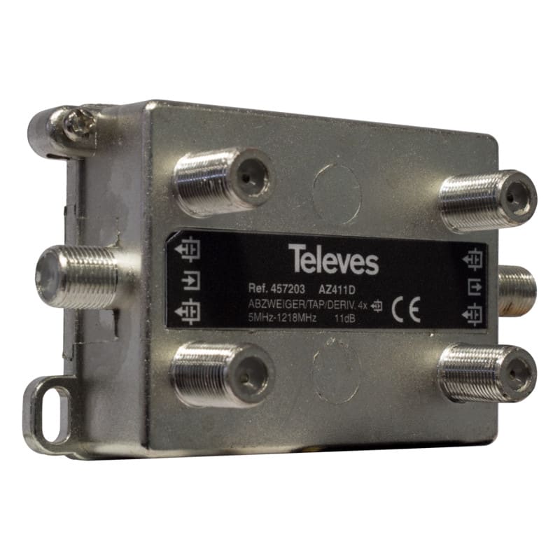Haaroitin neljään läpimeno 4 dB ja 4xtap 11. Taajuusalue 5-1218MHz,soveltuu antenni- ja kaapeliverkoille. Docsis3.1 yhteensopiva. Televesin haaroitin neljään 11 dB:n haara- ja 4 dB:n läpimenovaimennuksella. Taajuusalue 5-1218MHz, soveltuu antenni- ja kaapeliverkoille. Docsis3.1 yhteensopiva. Muista asentaa päätevastukset käyttämättömiin lähtöihin!