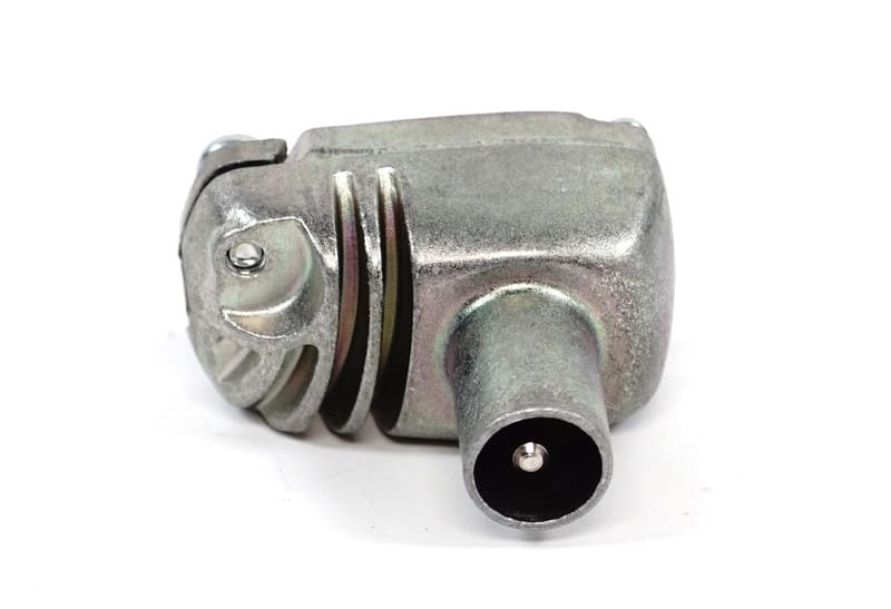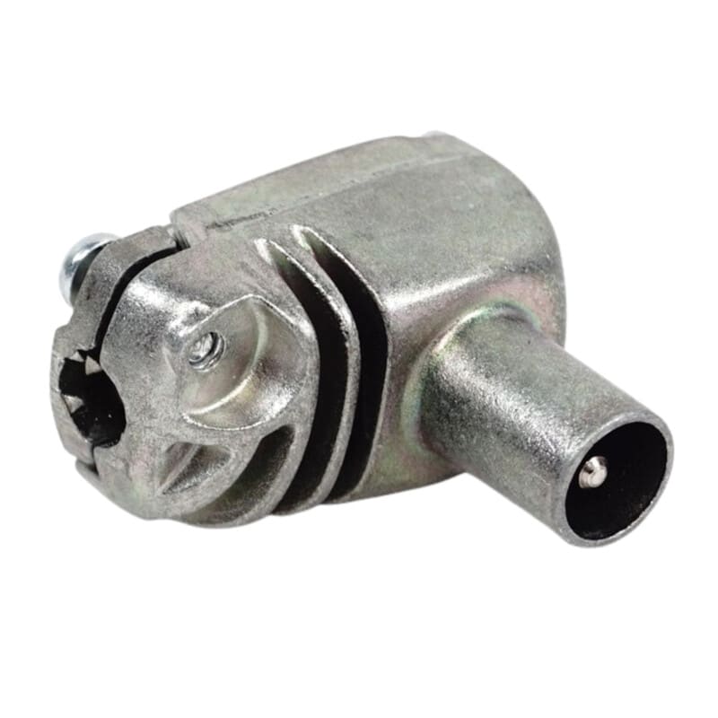 IEC-uros kulmaliitin, koaksiaalipistoke. Metallinen, suojausluokka A+.