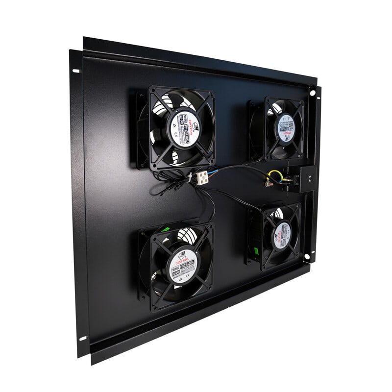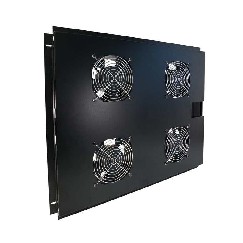 Neljän tuulettimen tuuletinsarja, joka asennetaan räkkikaapin yläosaan jäähdyttämään kaapin laitteistoa. Tuuletin luo ilmavirran kaapin sisään, mikä edesauttaa lämmön poistumista kaappiin asennetuista sähkölaitteista ja ylläpitää sopivaa lämpötilaa kaapissa. Neliönmallinen tuuletin sopii 600x800mm ja 800x800mm 19\" räkkikaappeihin ja se sisältää ruuvit kiinnitystä varten.