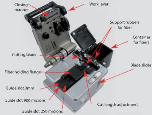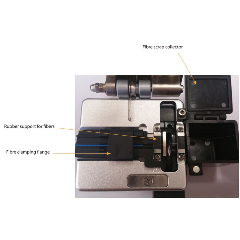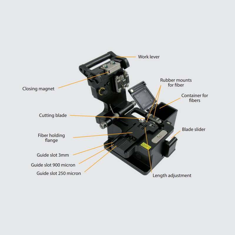 Leikkuri soveltuu sekä yksimuoto- että monimuotokuituihin ja sen ohjausura helpottaa kuitujen asettamista leikkuriin. Varustettu myös suojakotelolla.