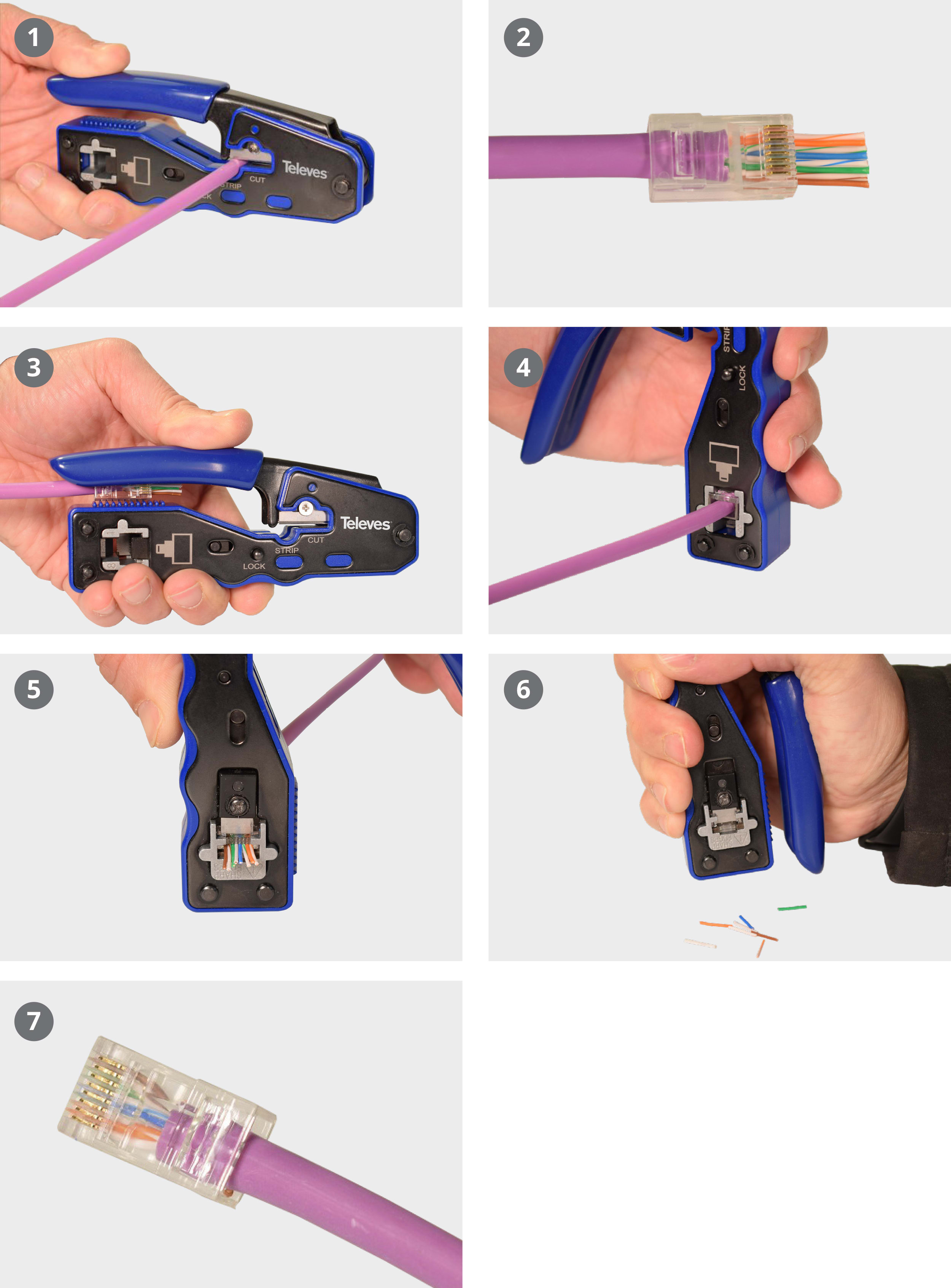 RJ45 UTP CAT6 pass through -urosliitin datakaapeleiden kytkemiseen. Pass through -ominaisuus tuo mukavuutta ja luotettavuutta kaapelin kytkemiseen. Johdinparit viedään liittimen läpi toiseen päähän asti, varmistaen, että kaikki parit saavuttavat liittimen pään ja ylimääräinen johdinparin osa leikataan pois. Näin pystytään varmistamaan, että johdinparit ovat kosketuksissa napojen kanssa ja liitin on kytketty oikein.