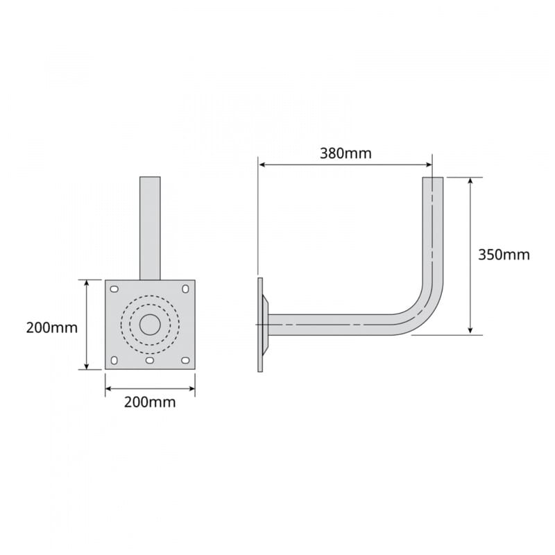 TELEVES - Mastokiinnike - L-kiinnike 380x350mm, Ø45mm