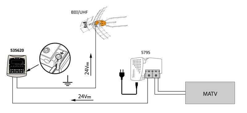 Laadukas 1-tuloinen Televes T535620 mastovahvistin sopii käytettäväksi UHF- tai FM- antennin kanssa.
