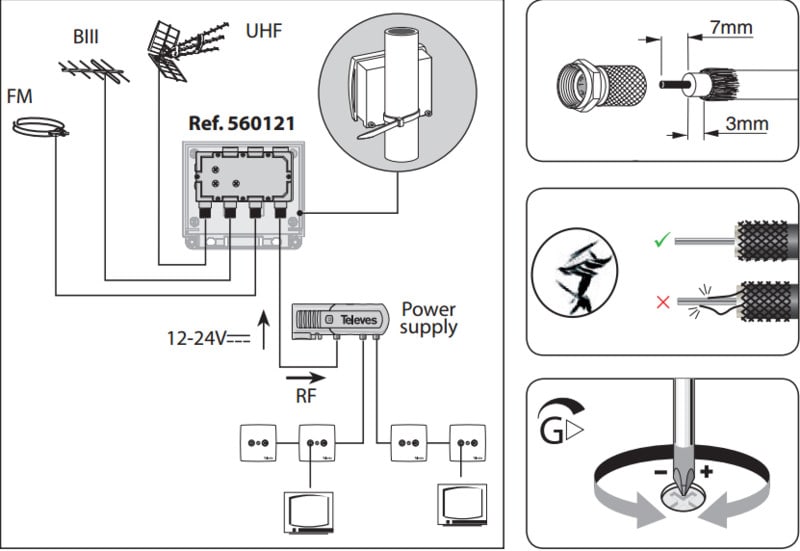 TELEVES - Mastovahvistin (F-liittimet) - FM / VHFIII / UHF (LTE700) AGC