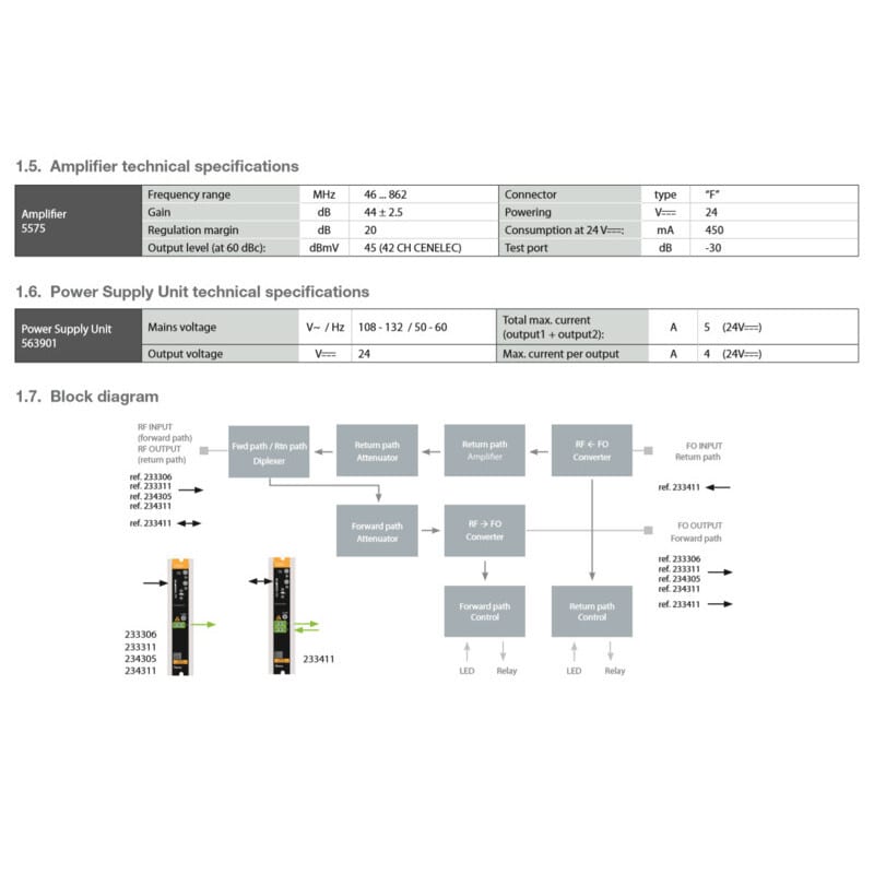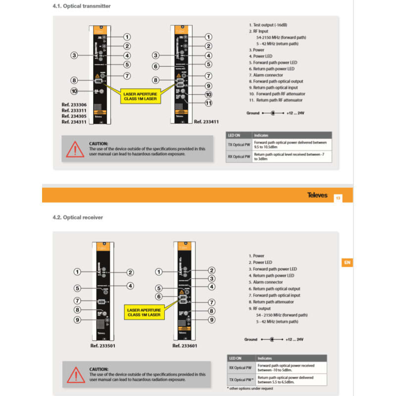 T0X Televes optinen vastaanotin 1200-1600nm, 54-2150 MHz, liitin SC/APC,sis.virtalähteen 90-264 VAC
