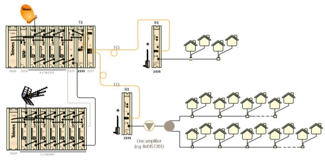 T2335 on optinen vastaanotin SMATV-verkoille ilman paluusuuntaa.