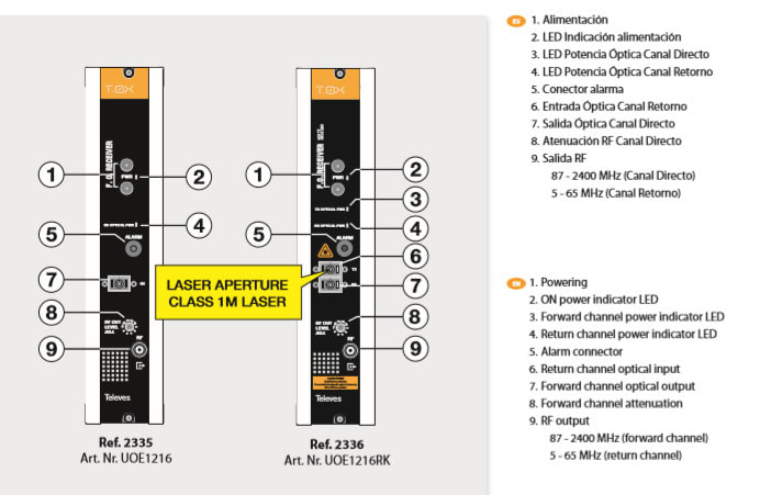 T0X Televes optinen vastaanotin 1200-1600nm, 87-2150 MHz, liitin SC/APC,sis.virtalähteen